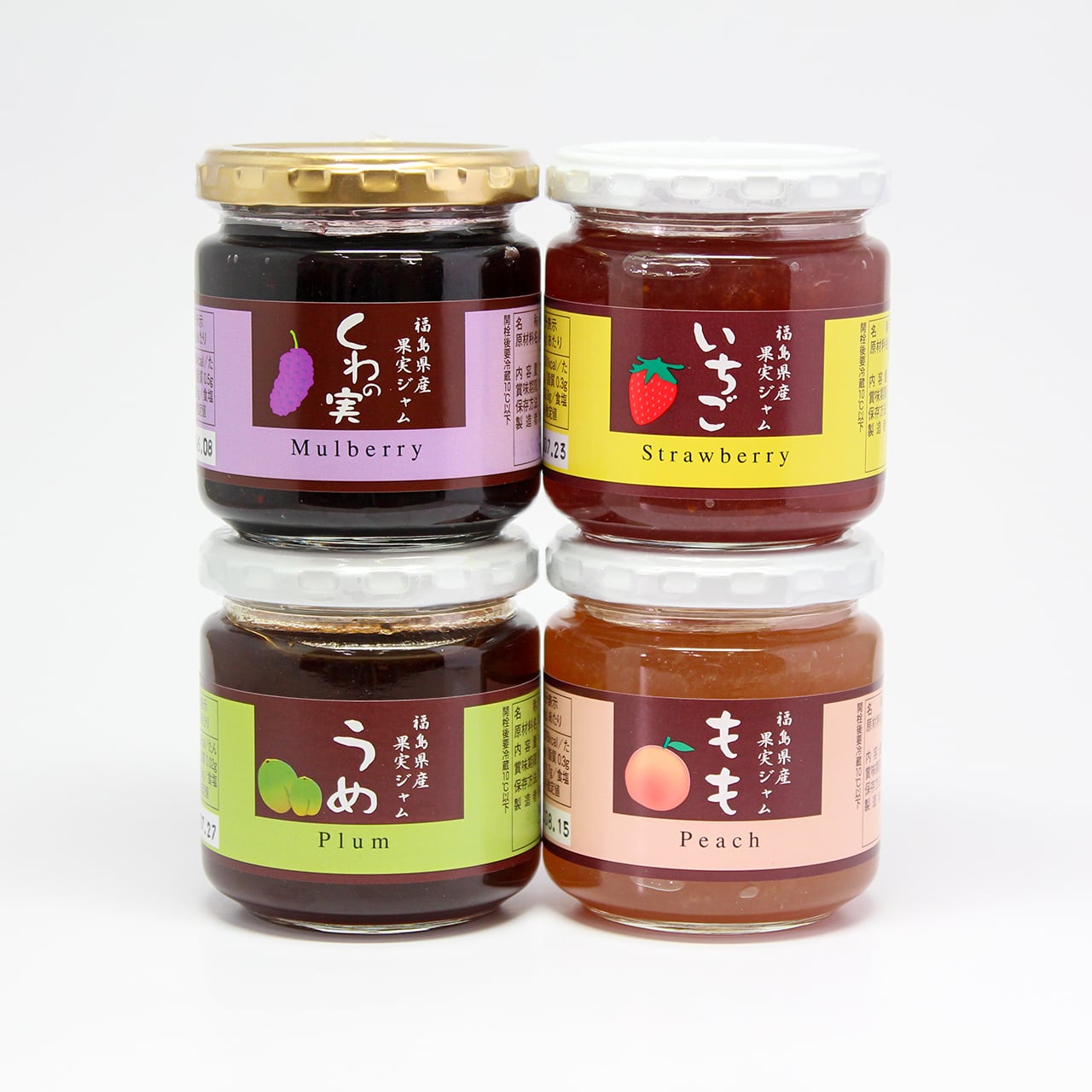 桃(あかつき)、いちご、梅、桑の実の4個のセット。